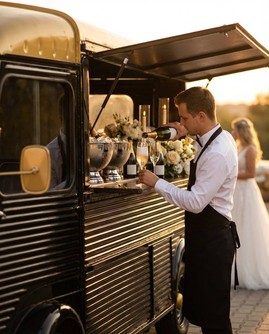 Ať už hledáte elegantní champagne point, romantický coffee corner nebo kompletní barový servis, Citroën HY se stává přirozeným centrem svatební oslavy.